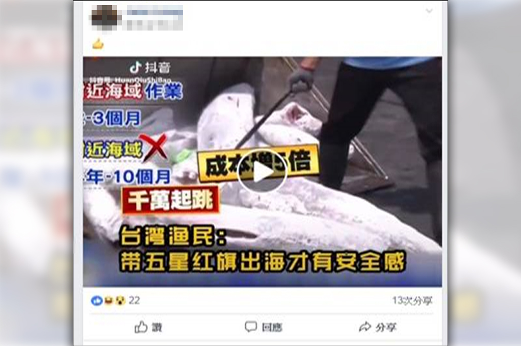 除了上述所提的「美國智庫警告抖音會收集用戶數據給中共運用」,對於兩岸關係而言,可別忘了「對臺統戰」更是中共一直以來的工作重點;觀看網民轉傳環球時報抖音帳號的影片,內容大大標註「臺灣漁民帶著五星紅旗出海才有安全感」等字樣,可以研判中共涉臺單位利用抖音投放客製化之統戰文宣,爭取國人在文化、情感等意識面向的認同度,隨著抖音逐漸走向社群媒體大宗,35歲以下用戶占比超過7成,而全世界年輕的一代會不會在潛移默化中也遭中共洗腦,進而成為中共統戰「成功案例」,將會是未來美球國安危機最大的引爆潛在因子(圖5)。