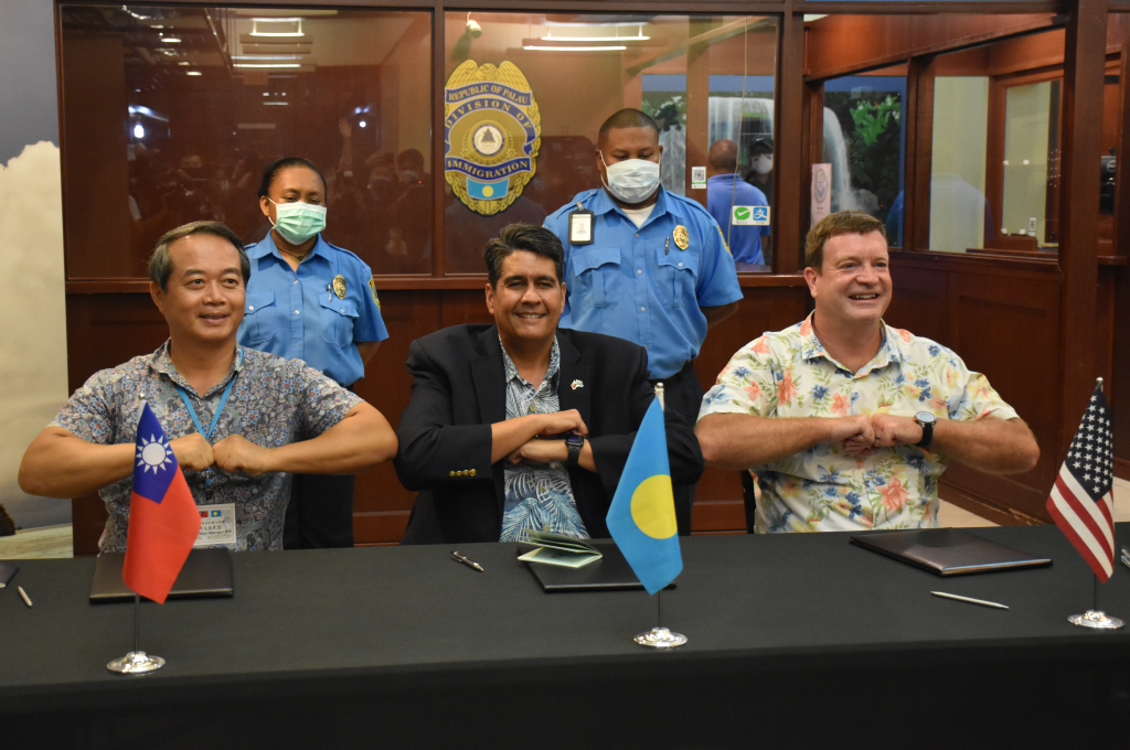 惠恕仁與周民淦、倪約翰也一同簽署「帛琉誓詞」Palau Pledge,三人互動熱絡、有說有笑,展現三國之間堅定的情誼。