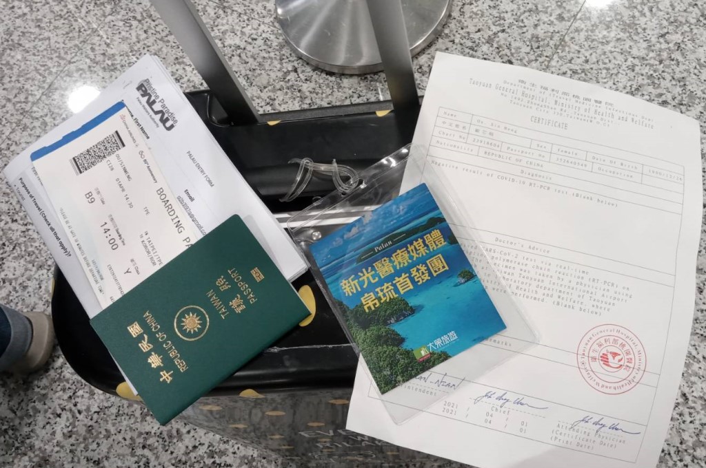 帛琉總統惠恕仁親自走遍全機,親手增送帛琉紀念提袋,夫人也隨之送上一枚印製台帛兩國國旗的口罩。在帛琉入關處,可以見到我國總統蔡英文上次造訪帛琉時簽署的「帛琉誓詞」Palau Pledge,就立在門口迎接首發團旅客。此行,惠恕仁與周民淦、倪約翰也一同簽署「帛琉誓詞」Palau Pledge,三人互動熱絡、有說有笑,展現三國之間堅定的情誼。