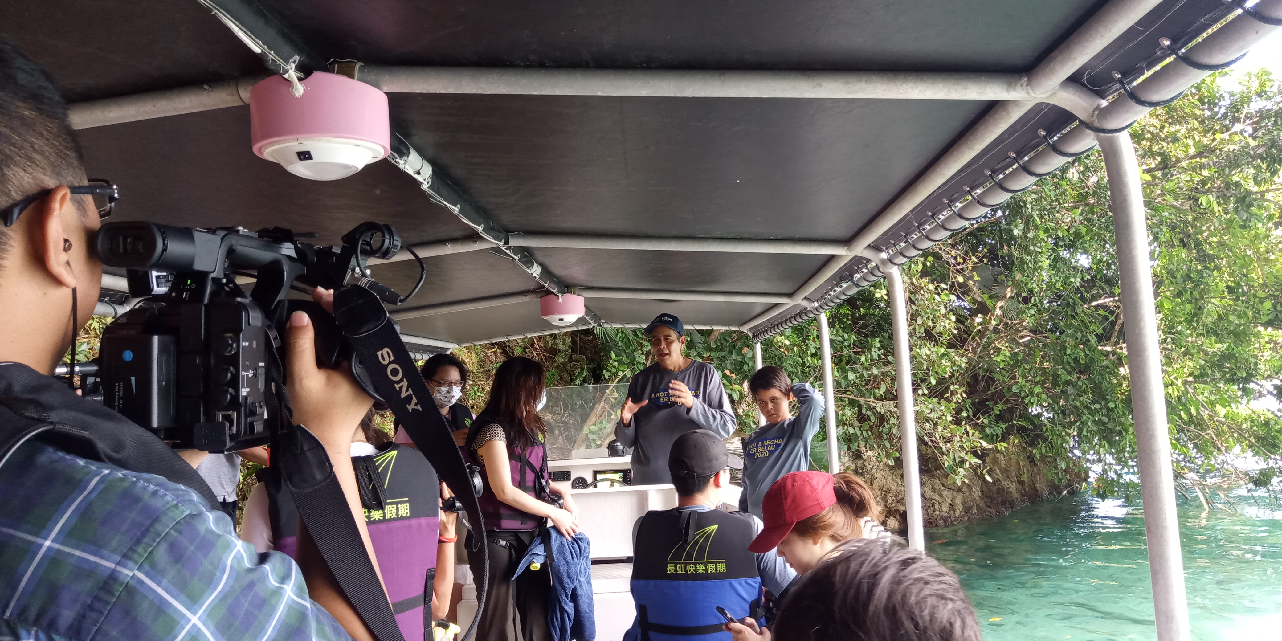 「台帛旅遊泡泡首發團」今(4)日來到最後一天,新光醫療媒體團的行程又有驚喜!帛琉總統惠恕仁帶著兒子,親自駕船帶領團員出海,前往目前暫因疫情歇業、尚未對外開放,世界上最大的海豚保育機構「太平洋海䐁灣」、海豚灣潟湖。海上返航途中,他將船暫時停靠在礁岩小島的一旁,帶領團員窺探外界鮮為人知、古代石頭錢幣的出產地「Metuker ra Bisech」。