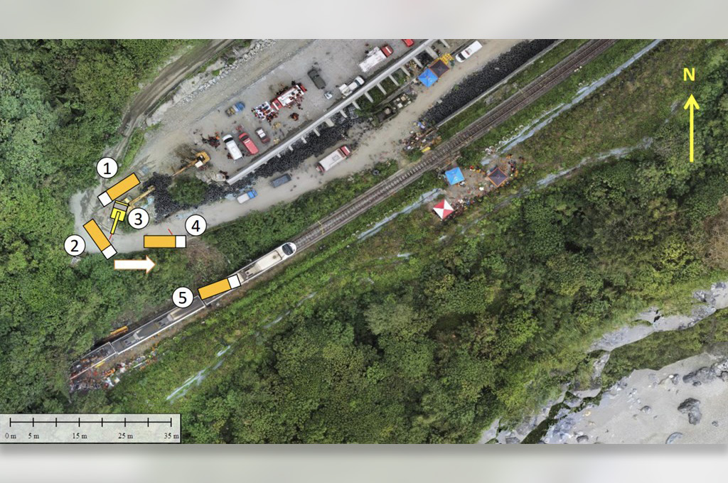 媒體追問,示意圖上紅色的線是不是就是怪手「吊帶」?楊宏智說,目前已蒐證完畢,確實在事發斜坡上詢問怪手的「吊帶」,怪手及工程車間確實有互動,至於是否和工程車翻落軌道有關,運安會只能提出事證,後續還是要交給檢調去做詳細的釐清及說明。
