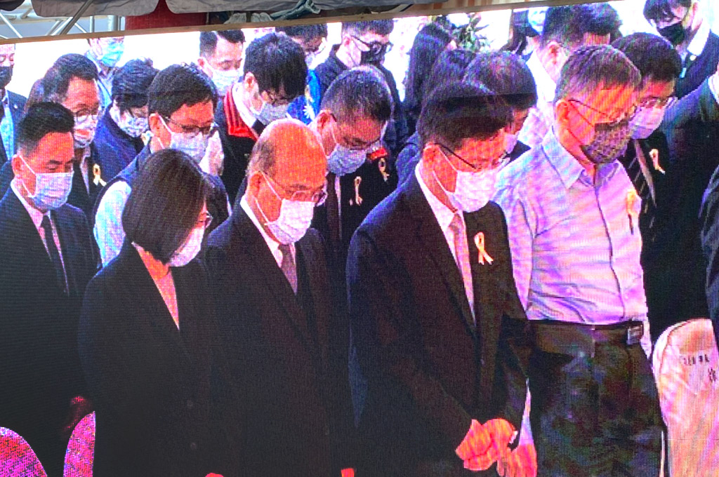 入場後蔡英文首先率蘇貞昌、林佳龍、陳時中等政府官員行三鞠躬,並與現場罹難者家屬一一擁抱致意。隨後柯文哲、侯友宜則也率市府官員行三鞠躬,並向台下家屬表達關心。