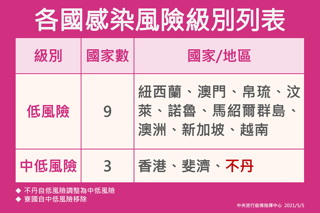 中低感染風險國家/地區:香港、斐濟、不丹。