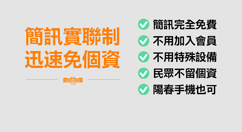 行政院今(19)日舉行「簡訊實聯制」記者會,政委兼發言人羅秉成主持,政委唐鳳、交通部長王國材與會進行相關說明。對於民眾最關心的「個資外洩問題」,唐鳳在QA時間強調,「簡訊實聯制」不是一款APP,是把只能打電話的1922,變成可以傳簡訊的1922;簡訊就是一般的簡訊,個人想刪就刪,只有店家代碼,沒有資料或經緯度,店家端什麼都不會收到,絕對保障個資。