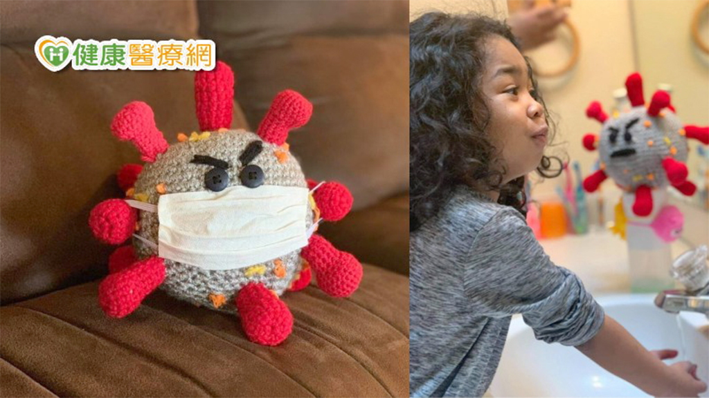 Sharon自製的新冠病毒娃娃,每日提醒女兒洗手要確實。