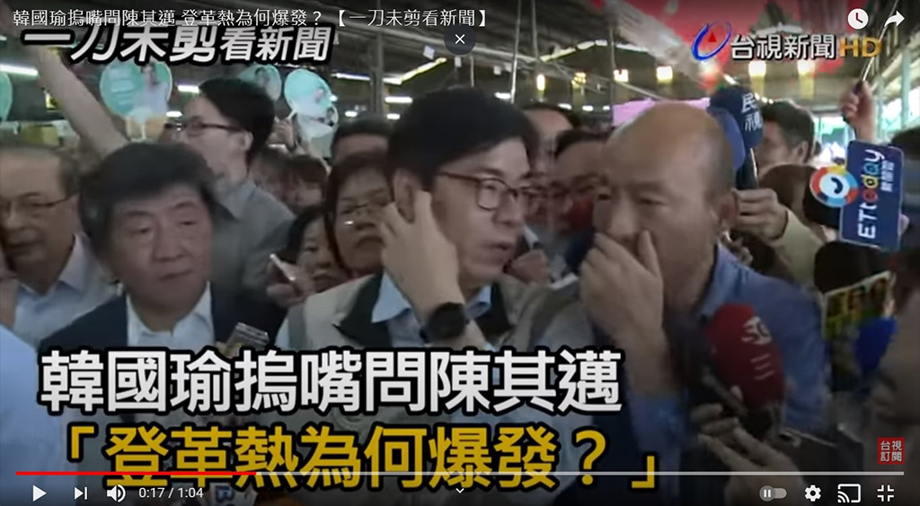 成大教授李忠憲分析,韓國瑜如果沒有選總統,要罷免韓的高雄市長並不容易。不過,韓國瑜這種的很容易看穿,但柯文哲那種的很難看清楚。他坦言,在時間上的觀察,韓粉和韓黑第一時間很快就壁壘分明,哪像柯黑形成的過程,從柯粉異化而來,有所謂第一梯、第二梯,一直到第七梯等等,在時間的洪流上面留下軌跡。
