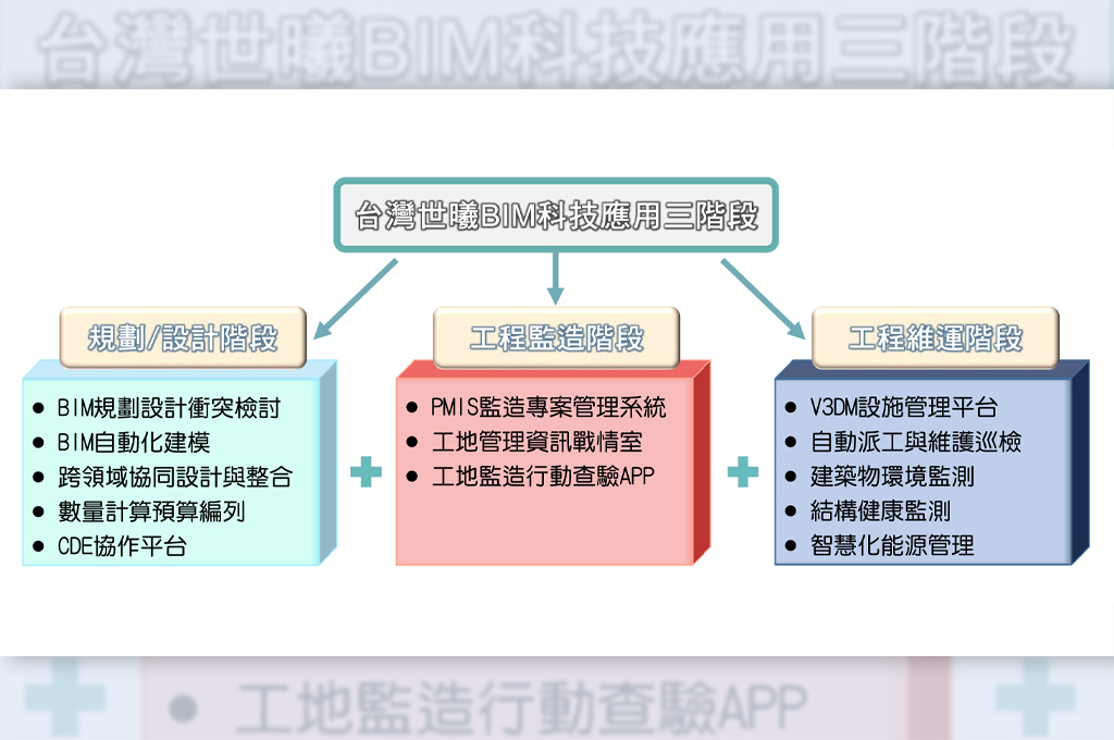 國內公共工程設計監造顧問公司台灣世曦著眼國際工程科技脈動,十餘年前率先導入「建築資訊建模技術」(Building Information Modeling,簡稱BIM),並應用在各類工程設計及監造。近二年ISO發布了BIM國際標準19650,台灣世曦也率先於去年及今年分別通過了ISO 19650-2(設計施工階段)及ISO 19650-3(維護營運階段)的驗證,成為國內第一家通過全生命週期驗證的單位。