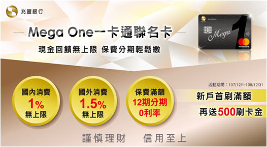 備註1. 卡片詳情請上網站查詢:https://www.megabank.com.tw/personal/credit-card/card/mega-one