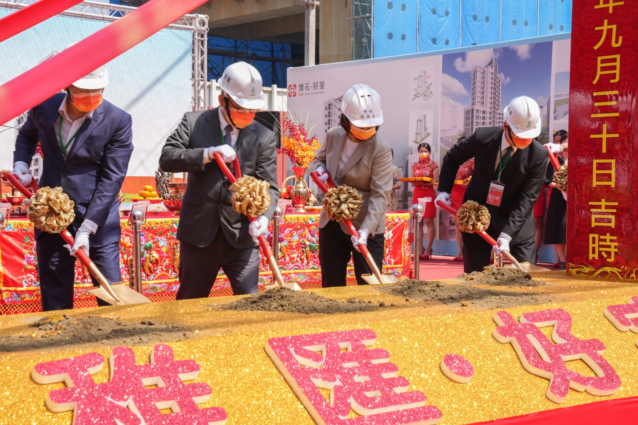 國家住都中心於新北市板橋區興辦之「稚匯好室」、「懷石好室」兩處社會住宅新建統包工程,於今(30)日上午舉辦開工動土典禮,由總統蔡英文親自執鏟,與內政部長徐國勇、國家住都中心代理董事長花敬群、新北市長侯友宜以及各方嘉賓一同蒞臨,在祈求工程順利進行同時,也為國家住都中心今年13處社會住宅即將連續動土開啟序幕。