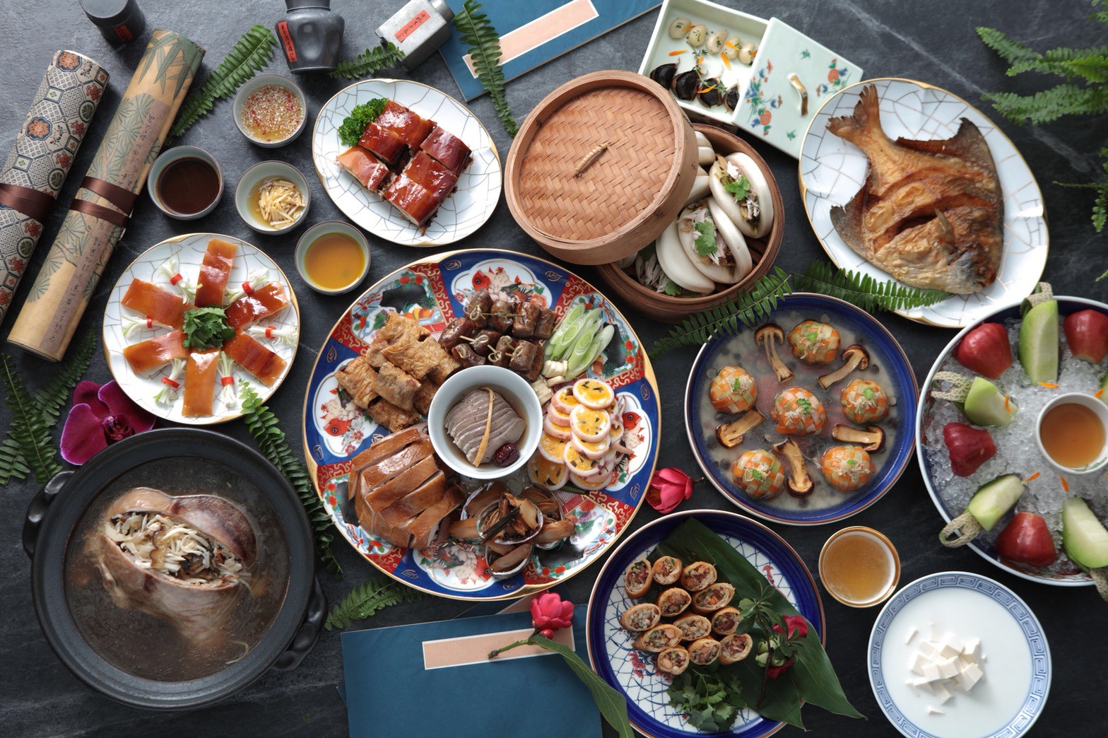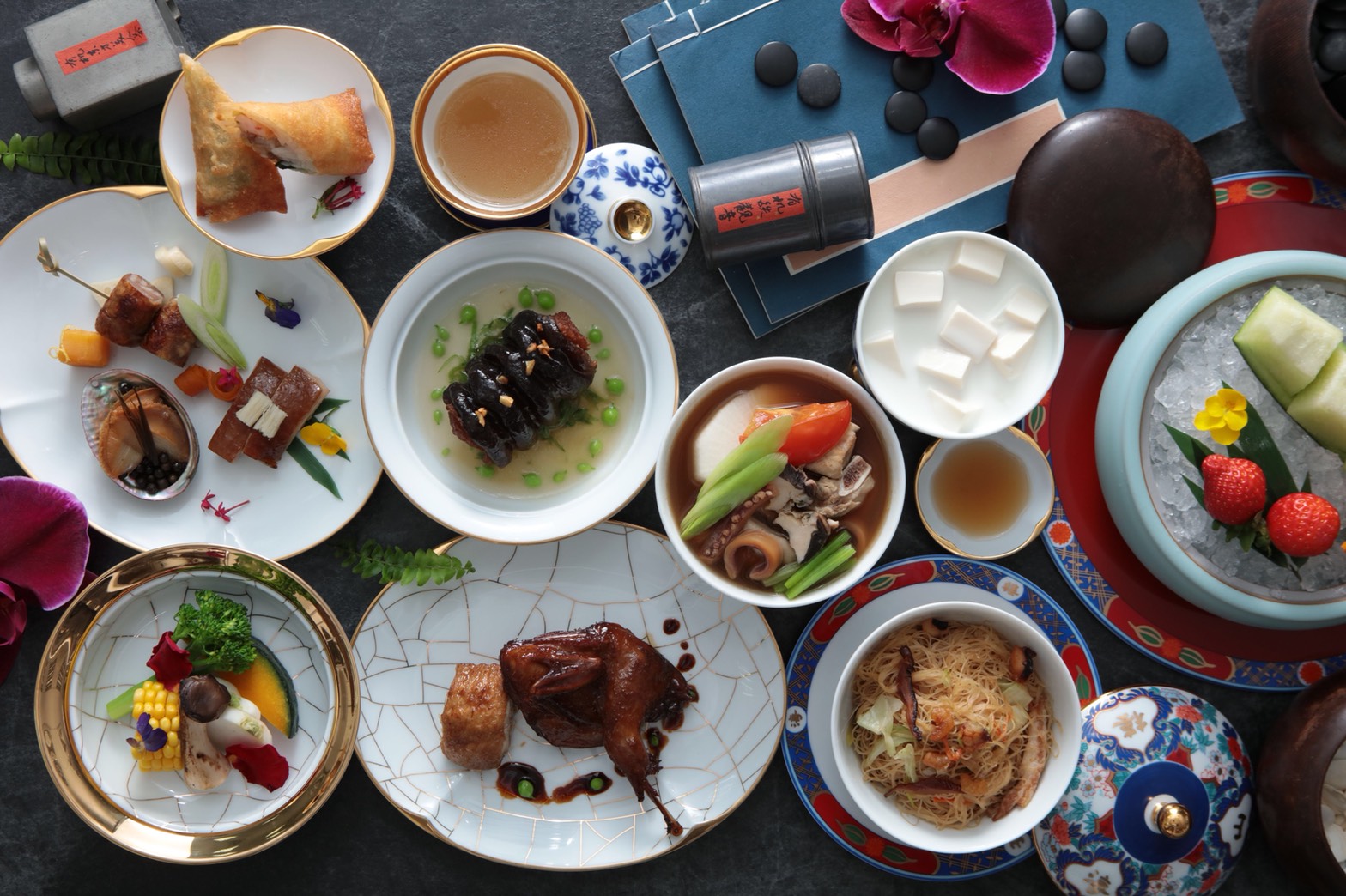 山海重新開幕的另一個大亮點,是全套餐具交由法國的瓷器品牌 LEGLE 設計訂製,這是台灣的中菜界從來沒有過的高規格,設計師張聰以台灣的山珍海味做為抽象的主題,加上正紅色的底盤,低調的金色裂紋瓷,呈現出的整體感和低調奢華感,從細節處再次確認山海樓有家宴的氣質,但其實是宴請國賓,讓每一位台灣的主人,都會引以為傲的台菜用餐經驗。