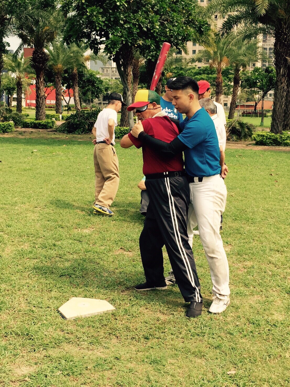 (圖片:陳敬鎧教導視障者基礎體適能和訓練盲人棒球隊。)