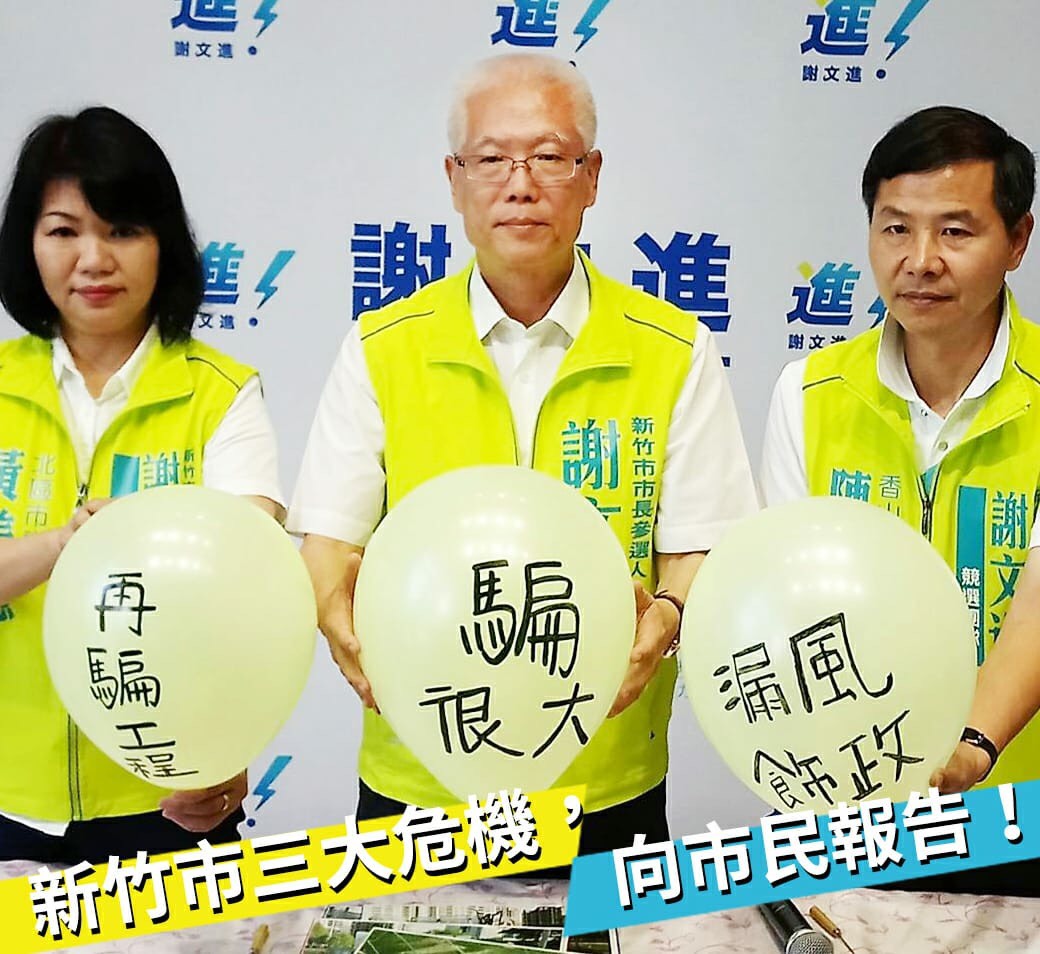 無黨籍謝文進與國民黨多位資深議員公開在直播的議會質詢中,批評新竹市長林智堅執政四年的建設都是「飾政」,其實是在誇獎林智堅擦亮了新竹市政的舊塵垢,讓新竹市的光彩讓更多人看見。