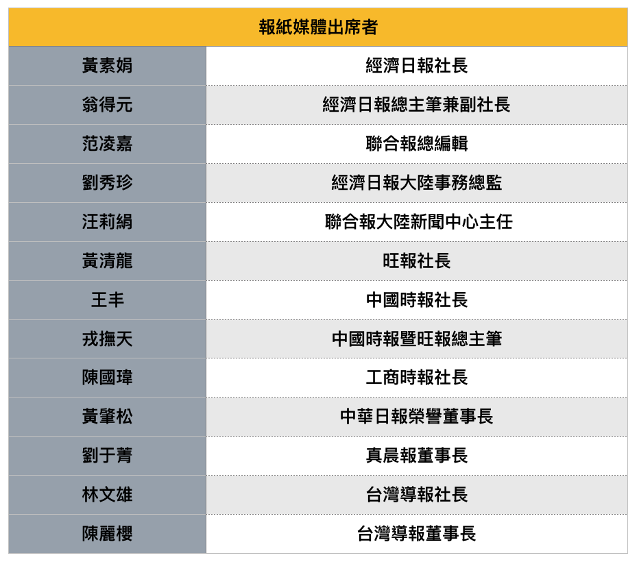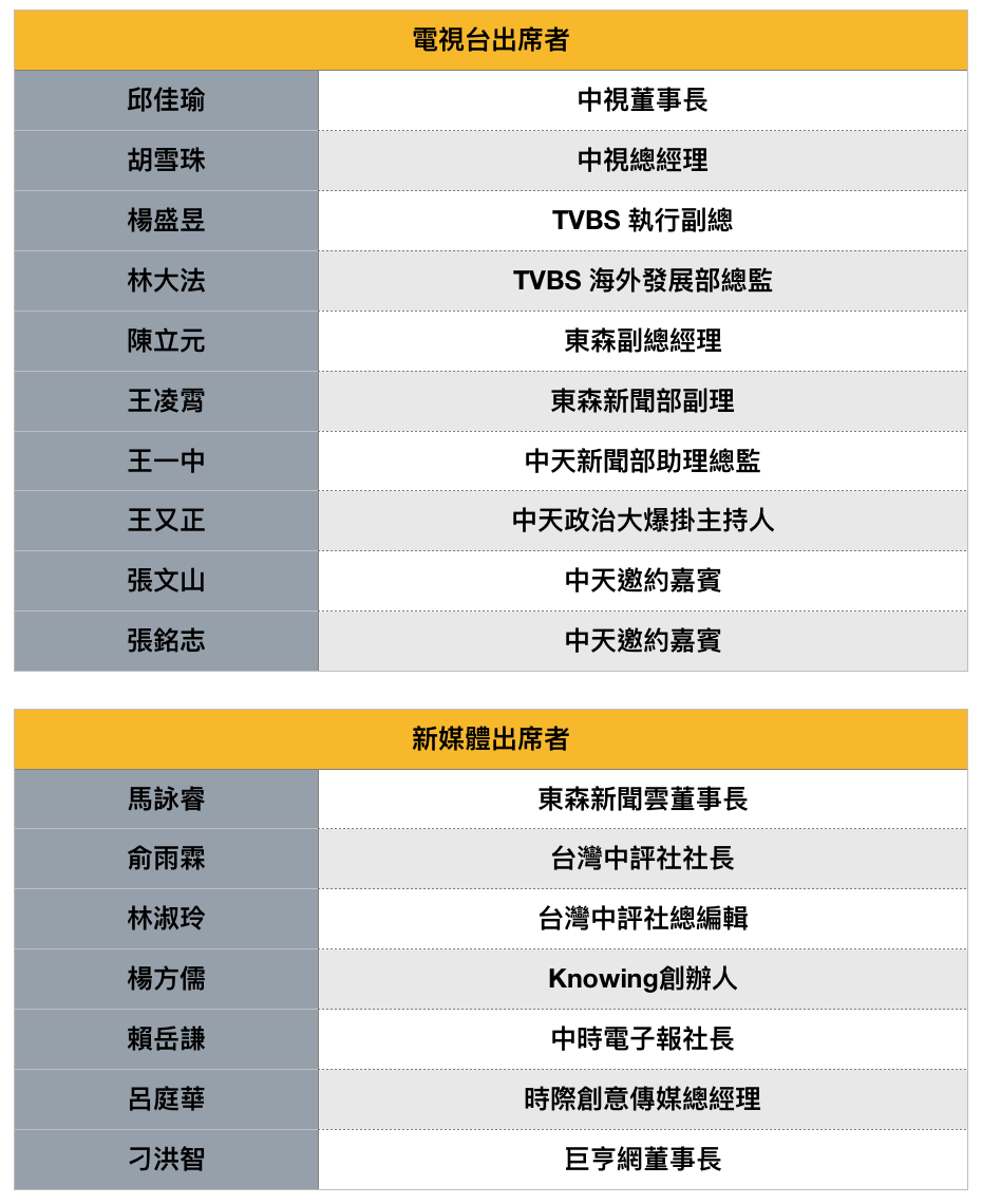 究竟哪些媒體被中國收編?對照網友於PTT八卦版公佈與會嘉賓,將完整名單整理如下,答案便呼之欲出。