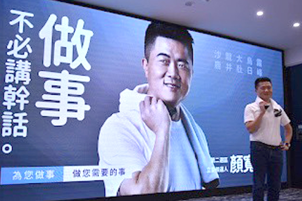 如今顏家的公關團隊再加碼,競選口號「做事,不必講幹話。」意思是「監督顏家的正義之士都在講幹話,就顏家最清白最實在不擅辭令。」