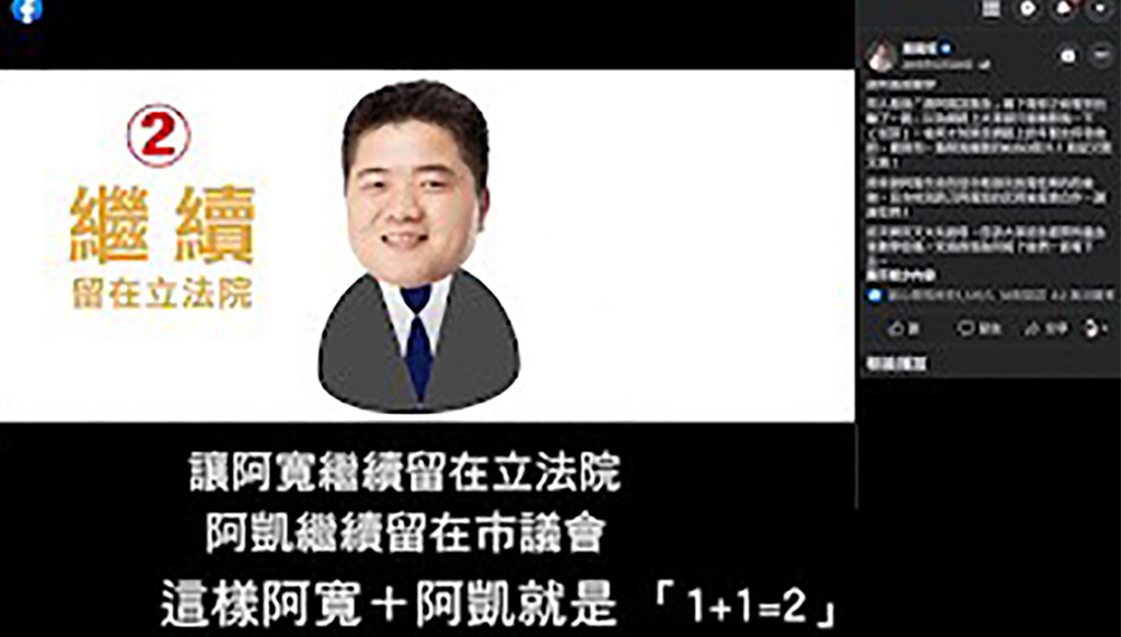 按照顏寬恒影片的說法,這次補選是不是也應該票投林靜儀,讓顏寬恒一家繼續留在地方上服務?才是「1+1=2」?