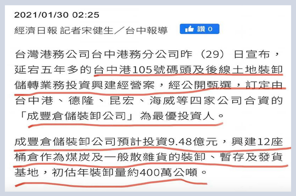 顏寬恒辦公室指出,得標的廠商是「成豐倉儲裝卸股份有限公司」,非周玉蔻爆料的昆宏投資股份有限公司,當時交通部長為林佳龍,一切程序依法得標;且成豐只負責倉儲裝卸,煤炭買賣屬於特許行業,未經許可不能夠買賣煤炭。而中火煤炭使用碼頭為101-103號,成豐公司得標的是105號碼頭,裝卸的煤炭是供民間業者使用,與中火燃煤毫無關係,痛批周、陳是烏龍爆料。