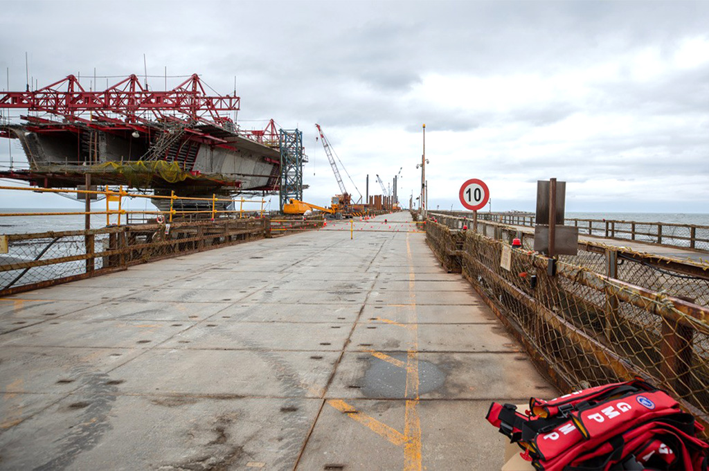 總統蔡英文今日訪查、聽取簡報的地點,位於儲槽區及棧橋之間,曾文生說明,這其實是一個工作便橋,未來完工後就會拆除,真正會留下來的只有棧橋。