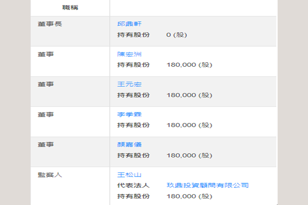 新任董事長邱鼎軒並未持股,顯然只是掛名,實權還是在顏家手上。邱鼎軒跟王松山曾經在顏清標妹婿林芳洲主導的長春重劃開發案中,用「人頭地主」偽造有利於重劃的條件,被檢方起訴偽造文書(邱鼎軒被判刑3個月)王松山是顏家關係企業得坤詮營造公司負責人,817地號兒童公園保留地上面的「政商樂園」,就是王松山負責蓋的。