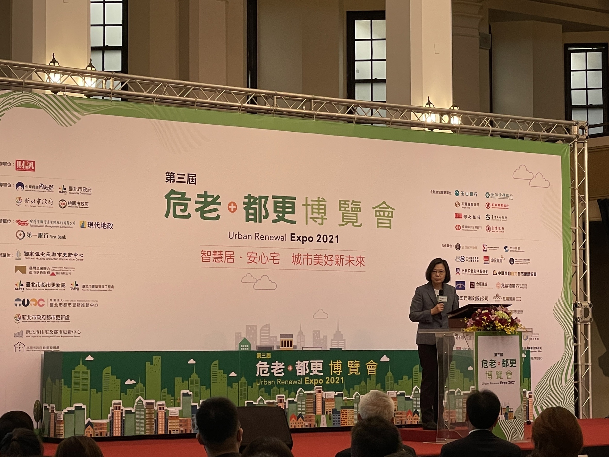 總統蔡英文表示,安全的居住環境是人民基本的需求,都更必須是中央與地方一起合作,政府也將會持續修正法規,降低都更門檻,提高相關獎勵,加速簡化都更危老計畫的審議,保障民眾的安全。