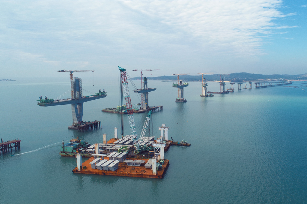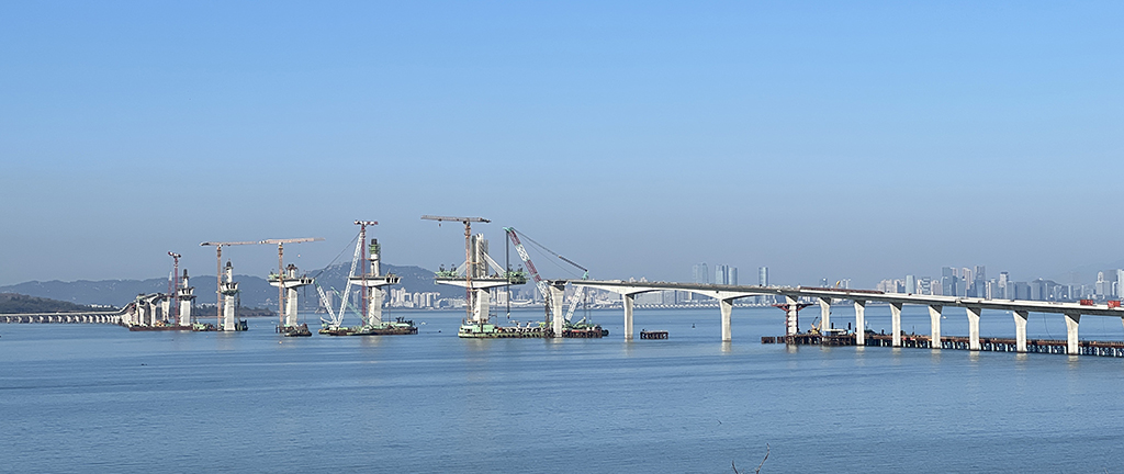 回顧深海基樁、水中樁帽鋼箱圍堰、造型塔柱、乃至進行中的海上預鑄節塊吊裝,這四個工項是金門大橋最關鍵的技術作業,台灣世曦工程顧問監造單位表示,「在深海基樁部份,我們克服了堅硬花崗岩盤、傾斜岩盤、風化程度不一及遇水崩解造成的坍孔問題;在水中樁帽鋼箱圍堰,我們經歷風浪的考驗,克服了幾千噸海水的浮力及鋼箱滲水問題;在主橋造型塔柱複雜漸變的設計線條下,我們克服曲線鋼筋及造型模板問題,完美的高梁穗心造型得以在海上鑄造呈現;而在海上從事預鑄節塊吊裝施工困難度高,除人力、材料、因應疫情措施外,尚需搭配跨海運輸、風浪、潮汐、船機調度,每一步驟都需透過精確的管理才能安全達成吊裝任務,金門大橋預鑄節塊共分376塊,已吊裝完成167塊。」