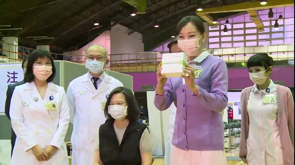蔡英文接種完高端疫苗後看著左手臂問道:「就這樣?」與溫慧敏互動相當輕鬆,並稱讚她:「非常厲害喔!沒什麼感覺。」最後蔡英文舉起小黃卡,表示正式打完第3劑高端疫苗,此時有媒體喊話,「總統打完肚子會餓嗎?」蔡英文輕鬆回應:「我已經先吃飽了。」