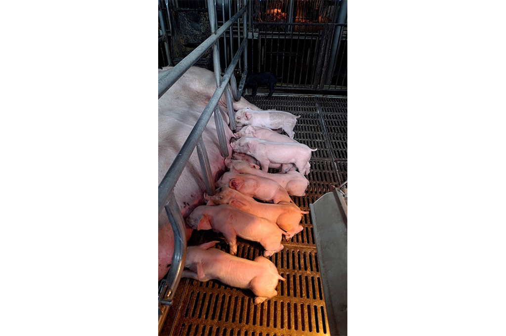 母豬1年內平均生下16~24隻小豬。白豬養成約6個月、黑豬8個月後可供上市。(圖片來源:鄭育松提供)