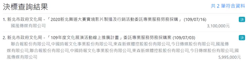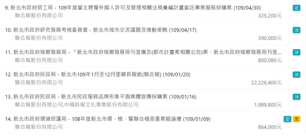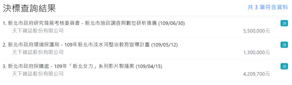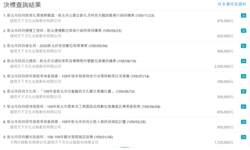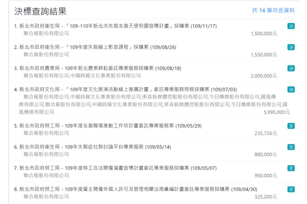 以上只是一年的量,很多媒體相關標案還沒列進去(例如勾惡的700萬)。