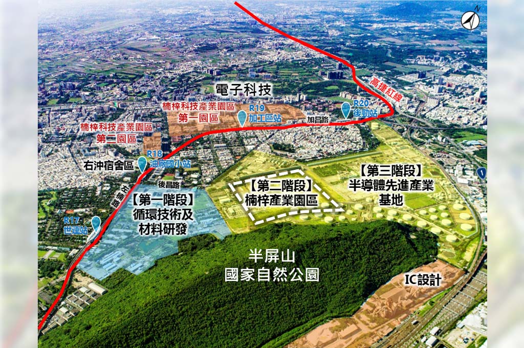 整體產業佈局將以楠梓區之高煉廠為半導體材料研發核心,往北連結台南、路竹及橋頭科園,往南銜接大社、仁武、大寮、林園、小港園區,建立南部半導體材料S形廊帶。