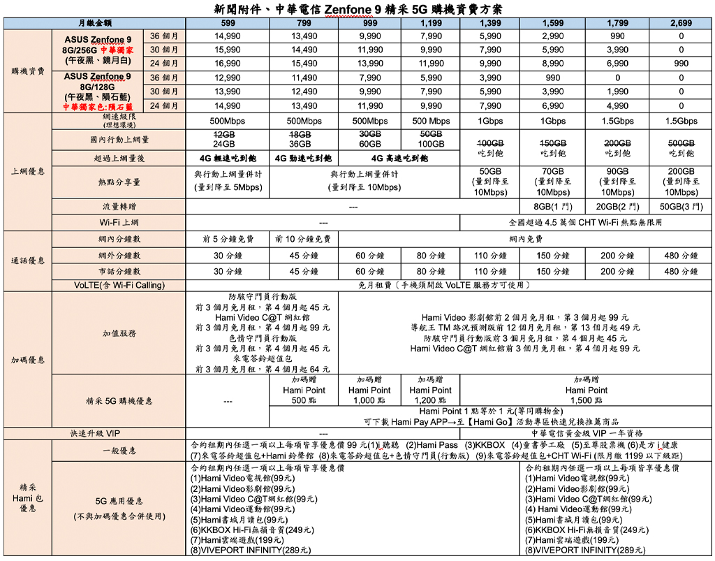 - 有關中華電信Zenfone 9購機資費方案優惠相關內容,將依網站公告為主。