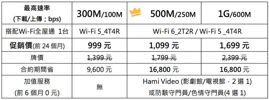 HiNet光世代超高速光纖上網服務,擁有優於業界的網路品質註,500M/250M方案原價1,799元現在只要1,099元,合約期間最高現省16,800元,此外免費升級Wi-Fi 6,有效提升全屋訊號涵蓋率,申辦再享0元使用6個月Hami Video影劇館或電視館(2選1),或防駭守門員/色情守門員(4選1),8月底前於網路門市申請加贈Hami Point 300點(1點等同1元),更可參加【小小兵2:格魯的崛起】電影票及豐富的周邊產品抽獎活動,這麼多的好康優惠現在升級高速寬頻網路超划算:https://www.cht.com.tw/home/campaign/broadbandlimittime/index.html