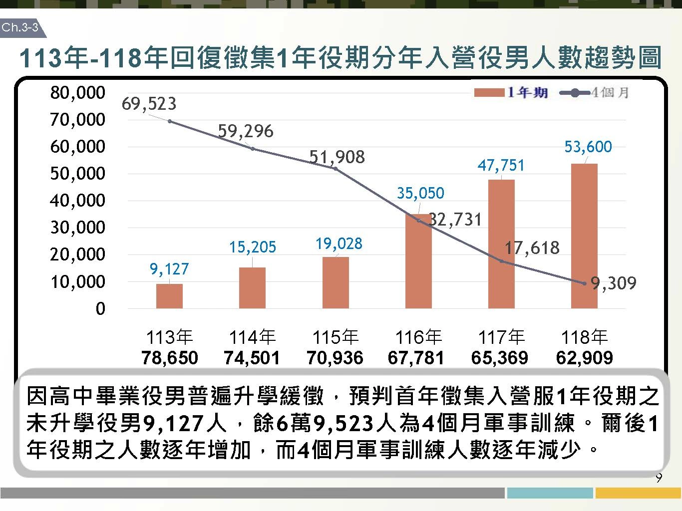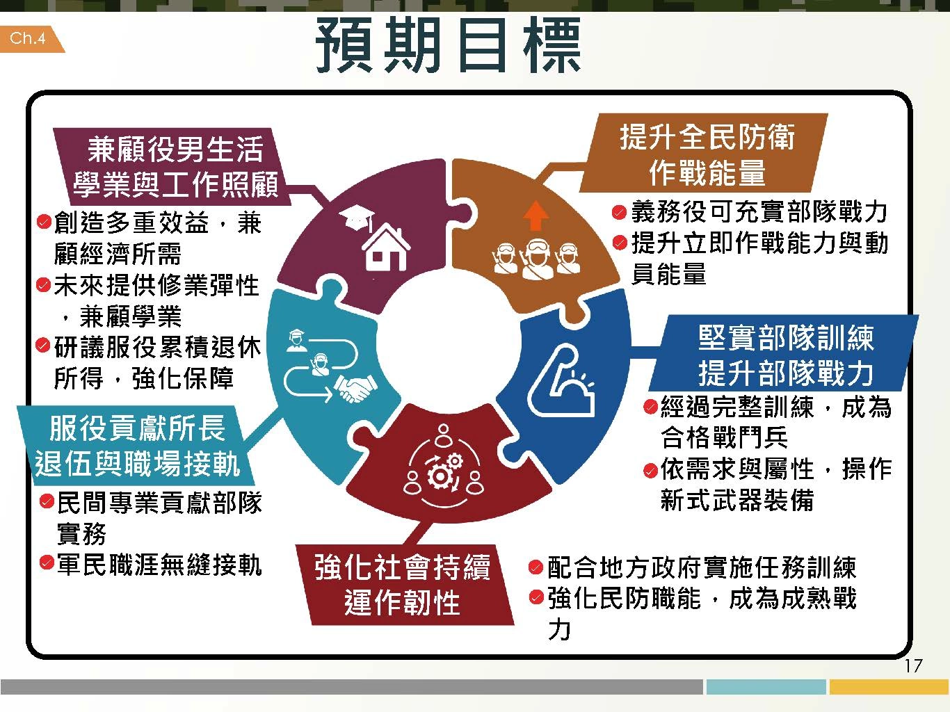 總統蔡英文召開「強化全民國防兵力結構調整方案」記者會,宣布2024年起恢復義務役役期為一年,國防部副部長柏鴻輝也在記者會中詳細報告方案內容,包括役期調整的具體規劃、義務役訓練的訓練要項以及相關配套措施,國防部也推出「5分鐘帶您了解義務役役期調整」的圖卡,以簡潔明瞭的方式來向社會大眾宣傳。