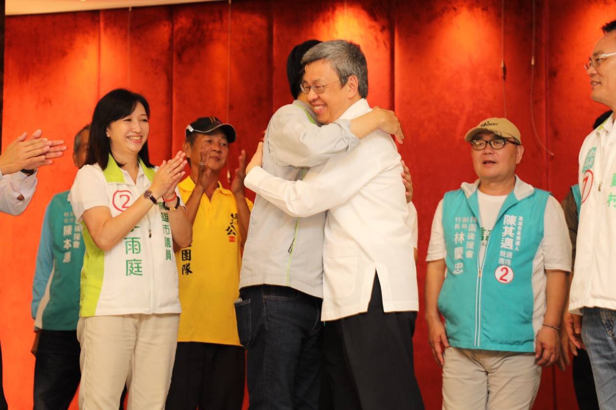 陳其邁感謝副總統陳建仁,從公共衛生專家的角度出發,提供他許多整合社區長照跟醫療資源的建議,他有信心未來當選後,能夠落實社會福利「高高平」,照顧好高雄所有的長輩健康。
