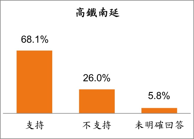 此次台灣指標民調也針對此項議題對民眾進行受訪調查,其中有68.1%受訪民眾表示支持潘孟安縣長爭取高鐵南延到屏東,26.0%不支持,5.8%未明確回答。