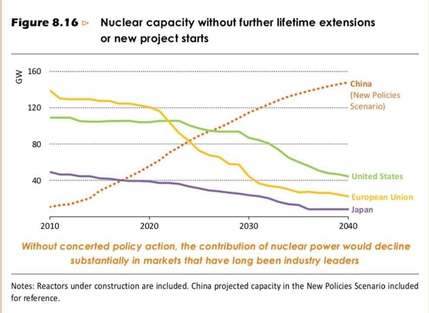 (IEA報告,未來核電趨勢,歐美日國家核電減少,中國印度增加)