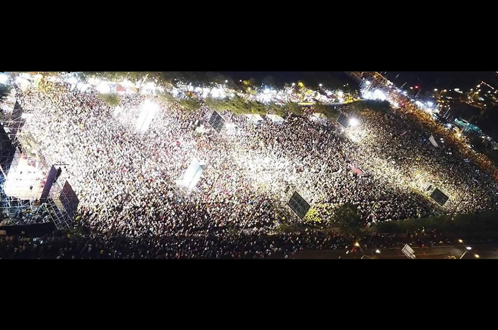 民進黨高雄市長候選人陳其邁18日在岡山舉辦「相信高雄 看好未來」造勢晚會,10萬熱情群眾擠爆會場。包括前行政院長游錫堃、前市長謝長廷、陳菊、行政院長賴清德都到場力挺。陳其邁呼籲大家用手中的選票告訴中國,台灣是有100%言論自由、獨立自主的國家。