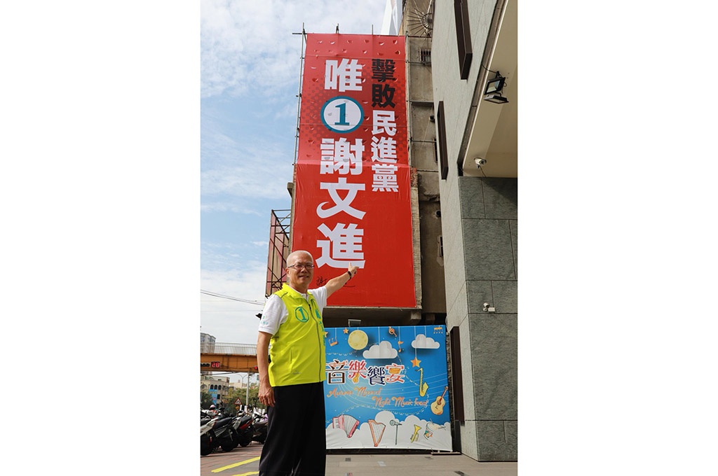 相較於前兩位候選人,無黨籍的謝文進卻是火力全開,從準備參選到選戰尾聲,不改復仇者心態,左批右打,處處爭發言權,企圖營造整合了國民黨與無黨籍選民共主的氣勢。