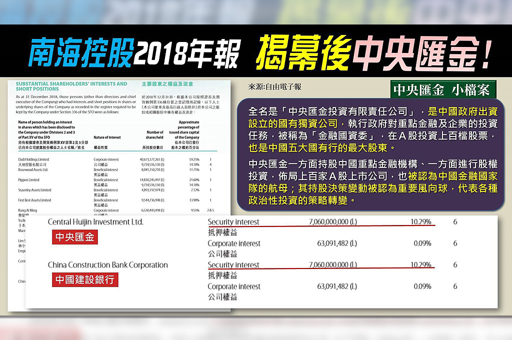(圖片:南海控股公司雖然是香港上市公司,但背後股東有中央匯金。)