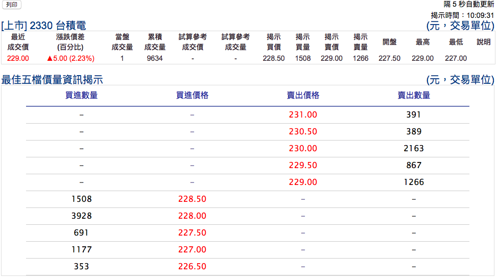 (圖1:證交所揭示的最佳五檔資訊,可以依股號查詢)