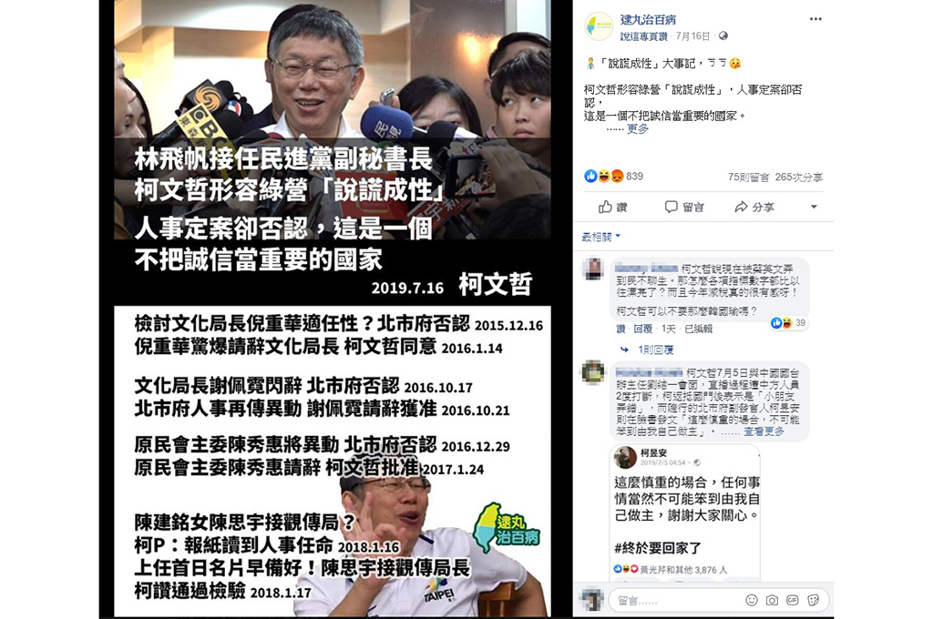 (顯圖取自《千錯萬錯,柯神不會有錯!爹親娘親,不如小英主席親!》臉書)