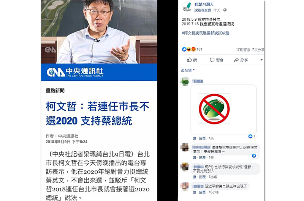 有知情人士透露,柯文哲確實曾說過「連任支持蔡英文」,不過那是蔡、柯在官邸會晤後,「民進黨尚未提名姚文智參選台北市長之前」。在台北市長選戰打成「三腳督」,以及作家吳祥輝大打器捐事件,柯文哲在藍綠夾殺下連任後,加上韓流崛起,如今「時空環境」已不同。