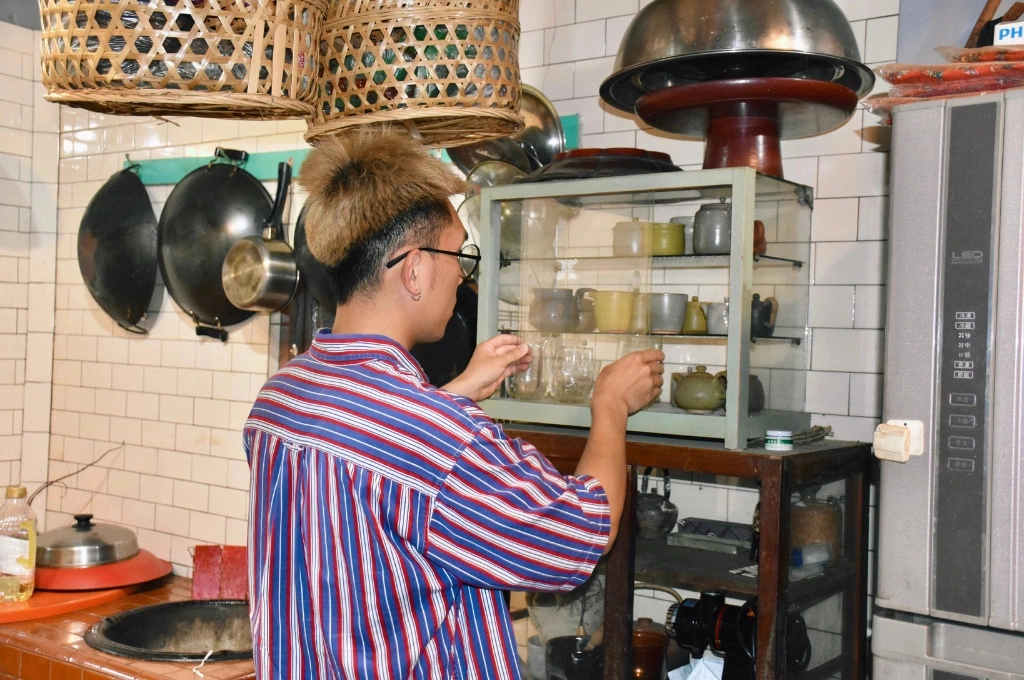 佐京從茶具櫃中小心翼翼地拿出陶器,這些器具不僅是他的手工創作,更是日常生活中品茗時不可或缺的夥伴