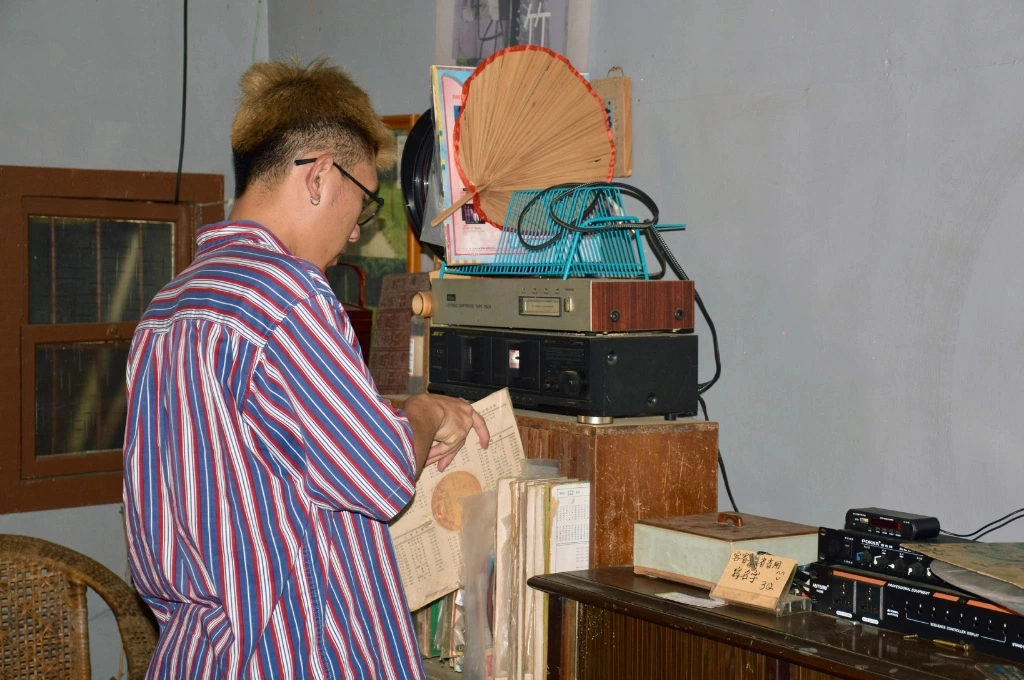 彭峻暘拿出幾片珍藏的復古黑膠,放送的是早期八音老師的原聲演奏,樂音迴盪,仿佛重現了傳統八音最純粹的時代風貌
