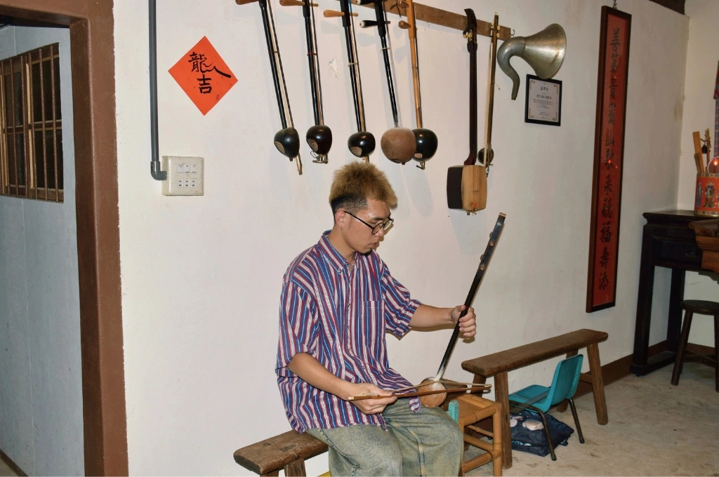 彭峻暘在演奏時展現出一種全神貫注的專業態度與深沉的情感,每一次拉弦都傳遞出對客家八音的熱愛
