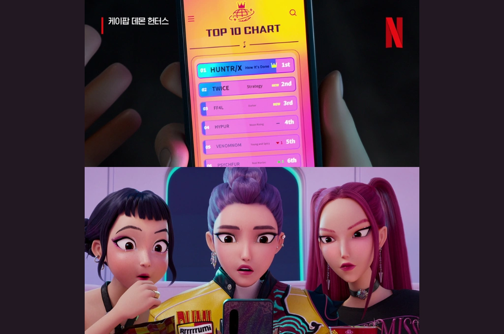 「只要待在一起就能光芒四射,我們會散發出燦爛金光。」動畫中3位女孩唱出不再隱藏、準備閃閃發光的決心,這是索尼動畫電影《Kpop獵魔女團》中的歌曲〈Golden〉。劇情講述惡魔持續侵擾人類,並將人類靈魂獻祭給統治者鬼魔,三名女性以「惡魔獵人」的身份崛起,創造名為「魂門」的結界,將惡魔與人類世界隔離,並傳承數代,以歌聲維持魂門效力。