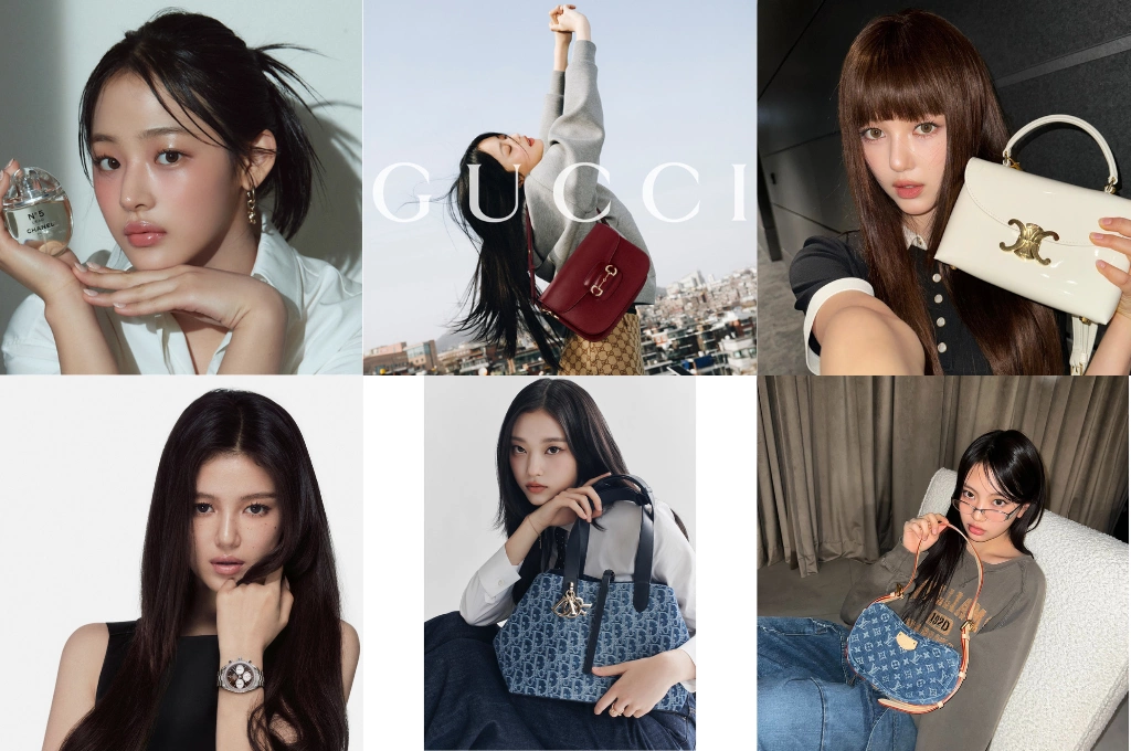 NewJeans以淡妝、不過度成熟的造型,成為Z世代自然又真誠的新型態偶像。出道後每位成員皆獲得國際時尚品牌代言,韓系自然又俊美面孔的Minji獲選香奈兒大使;Hanni以18歲之齡成為最年輕的Gucci全球品牌大使;Danielle則是Burberry、Celine的品牌大使,近日在訴訟風波中仍成為Omega品牌好友;貓相少女Haerin出任Dior全球品牌大使;2008年出生的「忙內」Hyein也被Louis Vuitton欽點成為品牌大使,以超越同齡人的獨特魅力駕馭起時裝拍攝,氣場不凡。