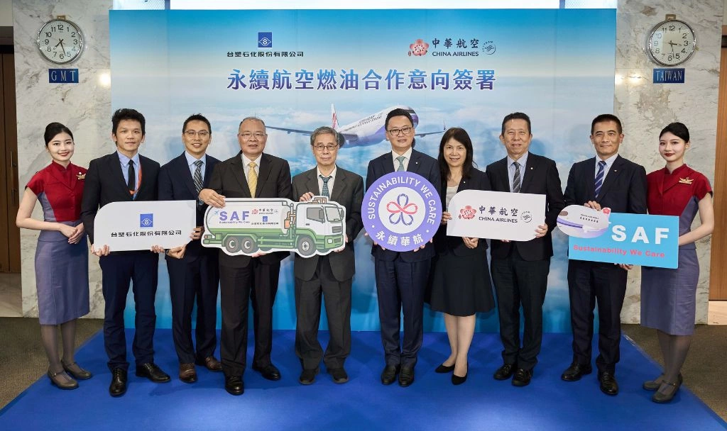 SAF 是國際航空產業實踐減碳的重要關鍵,華航與台塑石化共推產業供應鏈合作,落實低碳運輸目標,雙方今年初完成首批 2,500 噸國內自產 SAF 採購,添加於桃園出發航班,可較傳統燃油減少超過 80% 的碳排,更提高將來三年國內自產 SAF 採購總量。今年華航從台灣出發的航班都可以添加到 SAF,支持 SAF 新科技技術發展,具體實踐永續飛行理念。