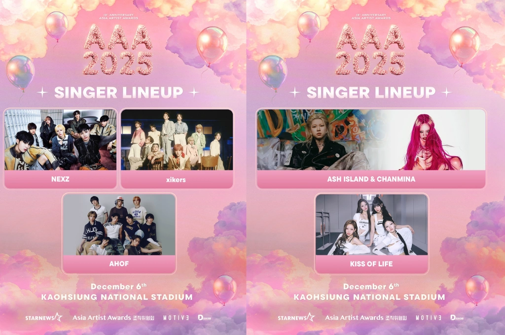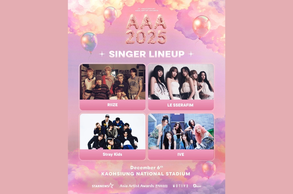 韓國頒獎典禮降臨台灣,讓粉絲們驚喜不已,AAA也陸續公布與會韓團,包含男團RIIZE、Stray Kids、MONSTA X、ATEEZ、CRAVITY、TWS,以及近期爆紅的新人男團CORTIS等;女團則有IVE、LE SSERAFIM、KiiiKiii、MEOVV、KISS OF LIFE等人氣團體參與,男女混聲團體ALLDAY PROJECT也出現在名單中。豪華的陣容讓台灣K-POP粉絲們摩拳擦掌準備搶票,AAA也公布票價座位資訊,門票最貴5,980元,最低1,980元,將在9月6日於NOL ticket (interpark Global)網站開賣部分區域、13日於ibon售票系統正式開賣。