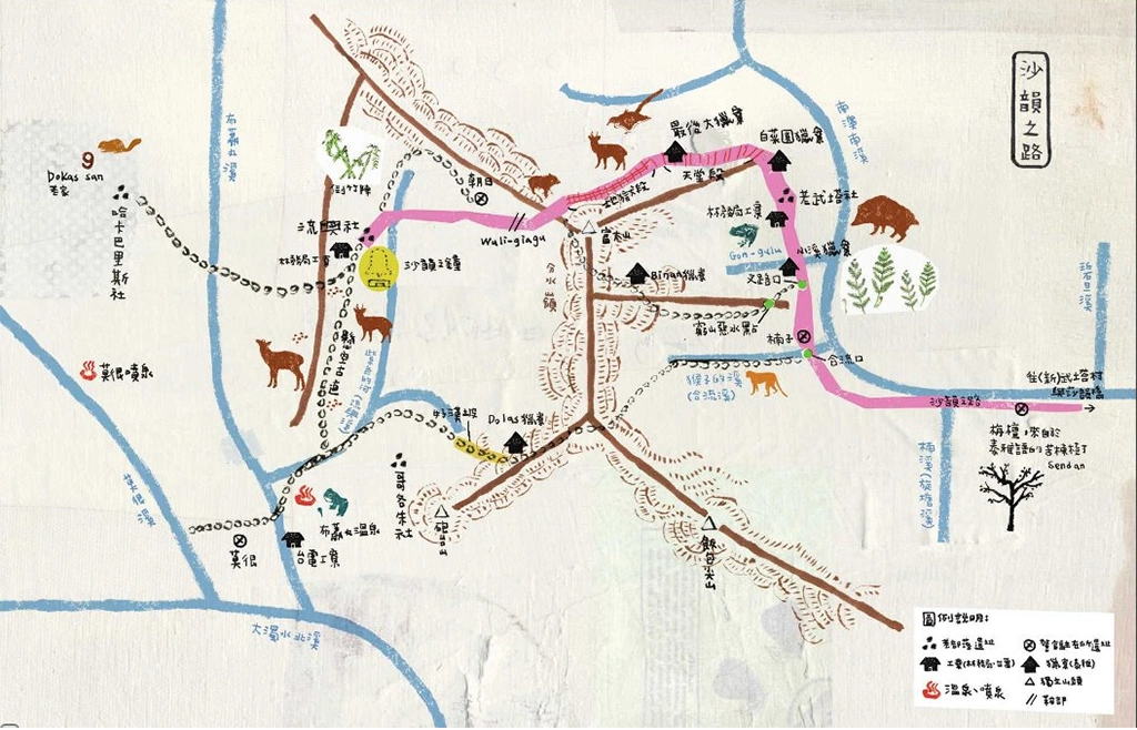 林克孝在著作《找路:月光.沙韻.Klesan》中親自手繪沙韻之路的地圖