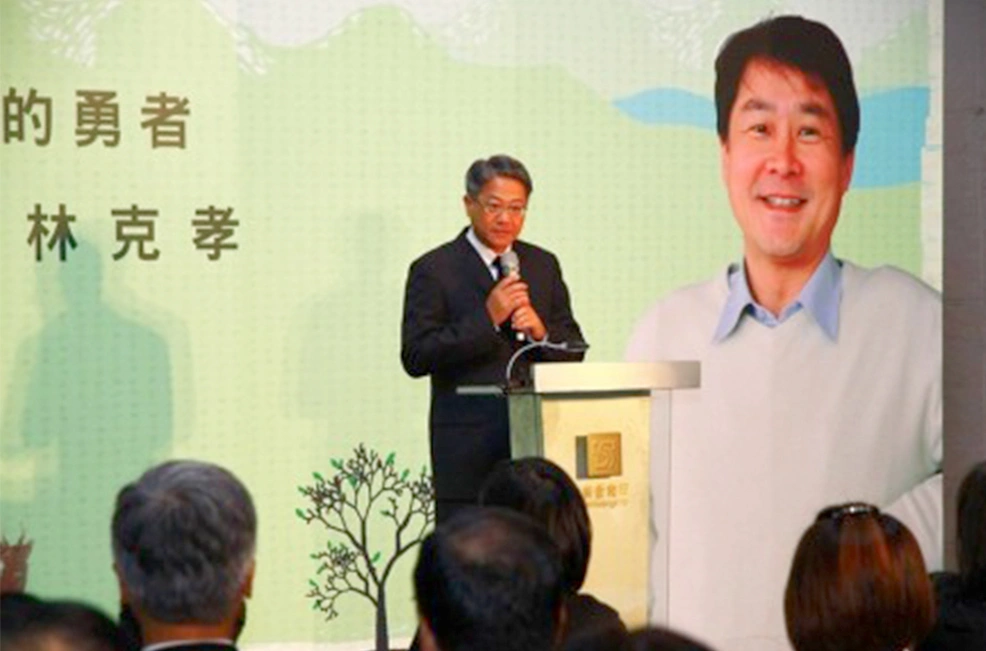 接著,林克孝的父親林文仁站上台,努力打起精神、強忍哀痛說道:「克孝…他從在媽媽肚子裡有生命以來,才52年又3個月,他沒來得及送他的父母、也沒來得及看自己的兒女長大成人……可是……克孝……你的身影永遠在我們的心中……我也要感謝你,你給了爸爸媽媽52年的幸福與快樂。」語畢,全場靜默,那一刻,所有人都紅了眼眶。