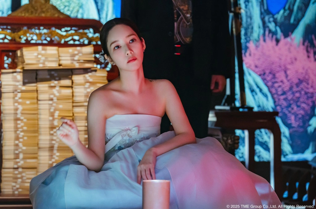 朴敏英在戲中則展現反差魅力,削肩韓服、高級套裝、絲綢睡衣輪番上陣,從冷冽眼神到甜美微笑,搭配細膩妝容,將尹怡朗的百變騙徒形象演繹得淋漓盡致。日前她在該劇記者會上分享:「這次飾演的是擁有IQ 165的詐騙團隊領袖,既理性又有反社會人格傾向,還背負著過去不為人知的傷痛,是一個讓演員也十分想挑戰的角色。」